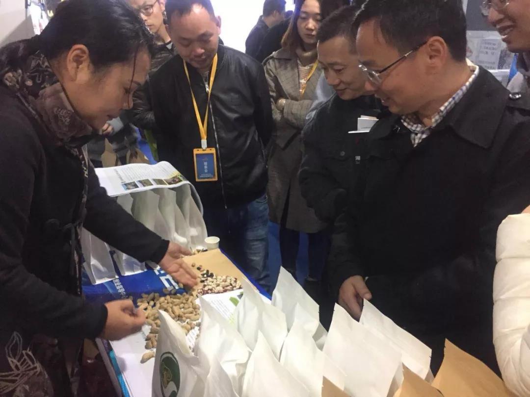 浏阳苡辰农场种出的彩色花生,种皮色彩斑斓,有黑花生、白花生、彩衣花生等品种,产品含有不饱和脂肪酸、贝塔谷固醇等保健因子,市场发展前景广阔,吸引了不少参会者目光。