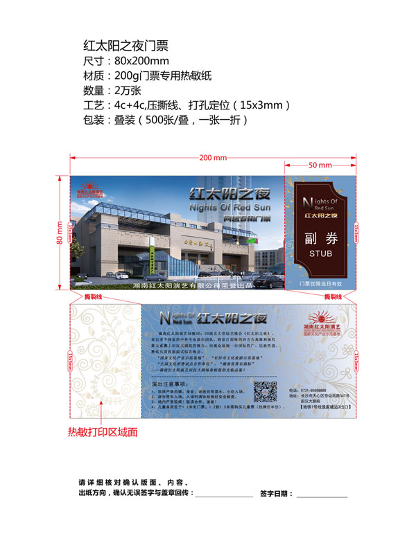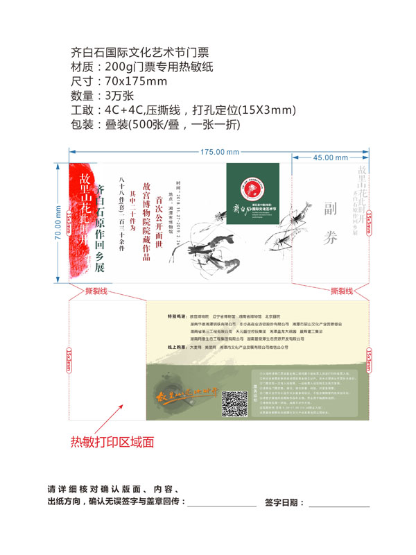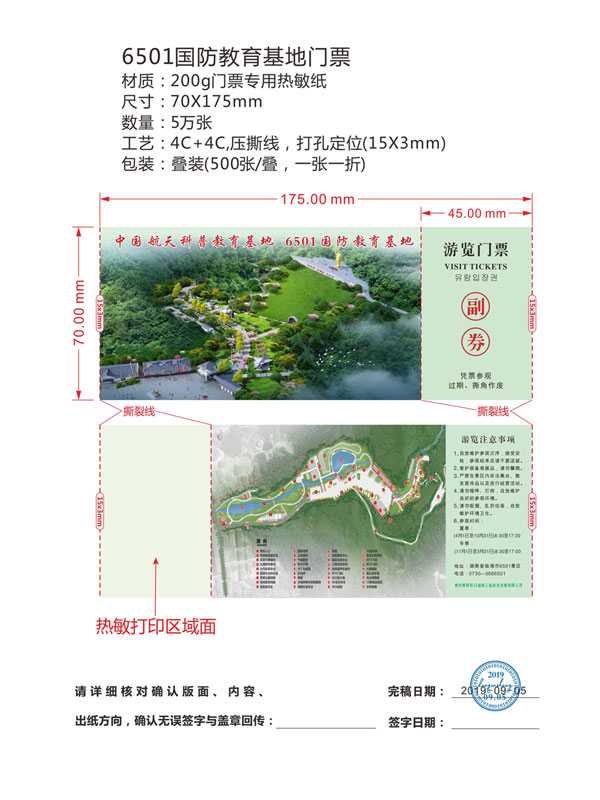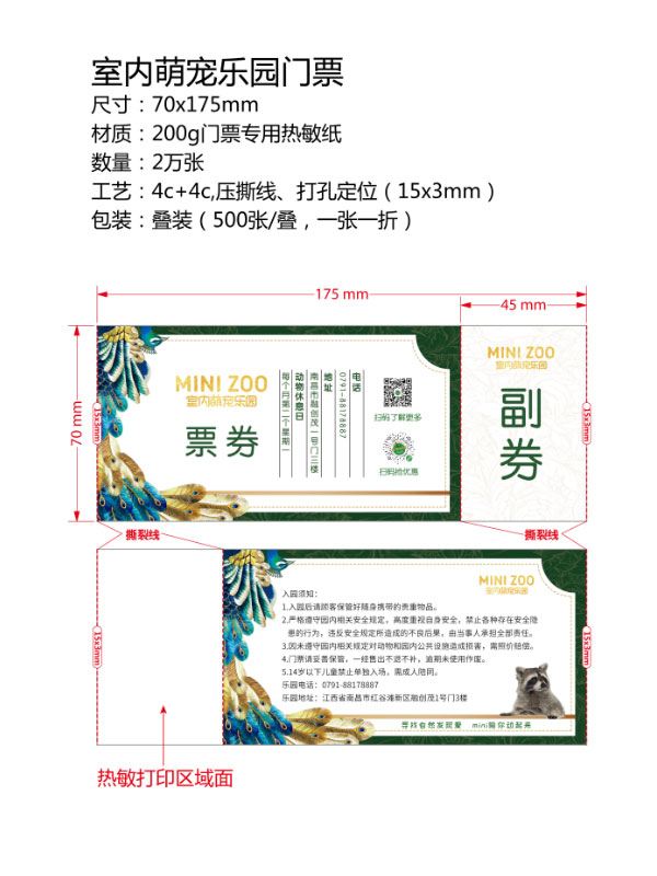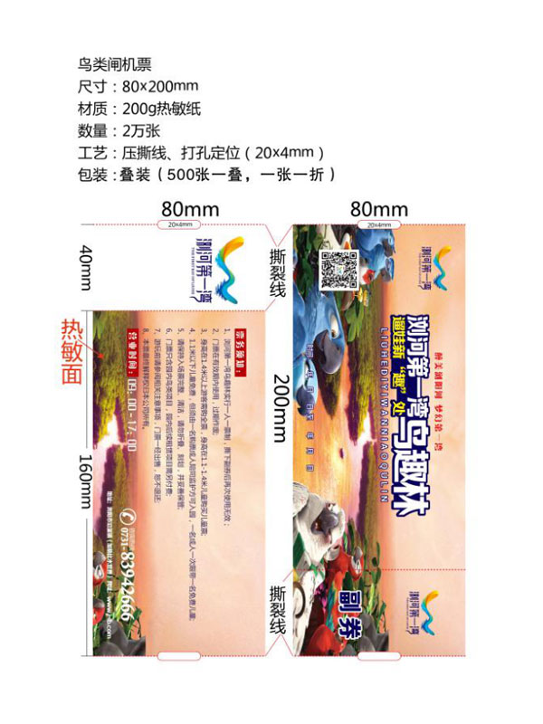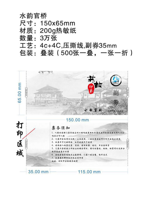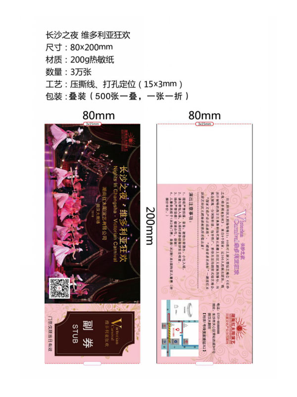 印刷工艺:卷装门票、折叠门票、撕线(每张之间的撕线,正副券之间的撕线)、定位(孔位定位,黑标定位)、流水号码(序列号,度乱码)、可变数据(可变二维码,可变条码等)。