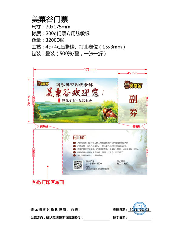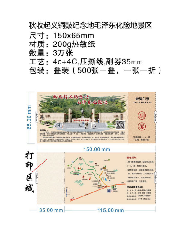 门票的打印方式,一种热转印打印(使用碳带打印,材质使用铜板纸),一种热敏打印(无需碳带打印,材质使用热敏纸)。